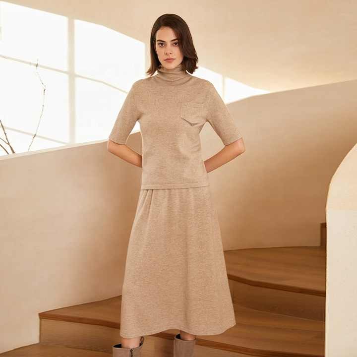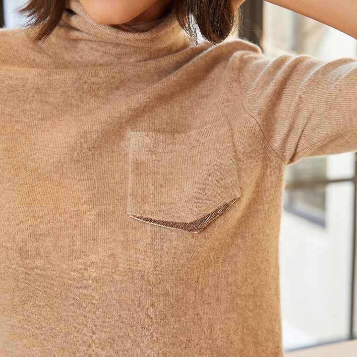 23BC-280 Turtle Collar Wool Short Sleeve Pullover Comfortable Knit Women Cashmere Sweater Women's Clothing