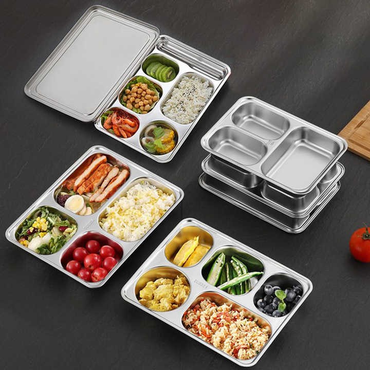 LIHONG Round 201/304 Stainless Steel Plate Tableware Food Grade 3/4/5/6 Dinner Tray Student Canteen